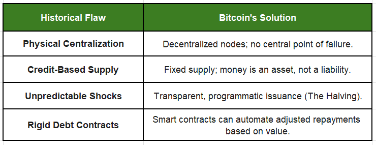 Bitcoin isn’t just a new asset; it is a fundamental redesign of money that bypasses the structural traps that turned historical deflation into “disasters.”